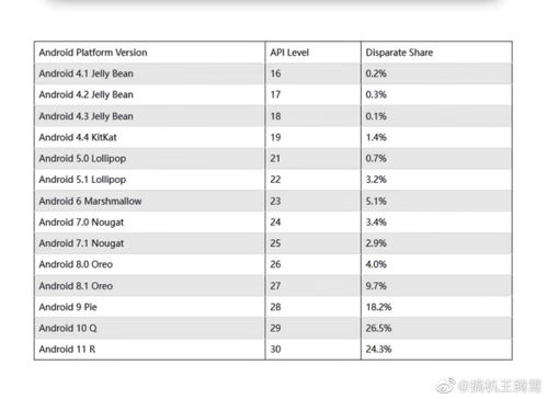 你有没有发现,手机的世界里,安卓系统就像是个大明星,总是那么耀眼!不过,你知道吗?安卓系统家族里,各个版本的小成员们也有各自的粉丝群体呢。今天,就让我带你一起揭秘安卓各个系统的占比之谜,看看哪个版本才是当之无愧的“人气王”!